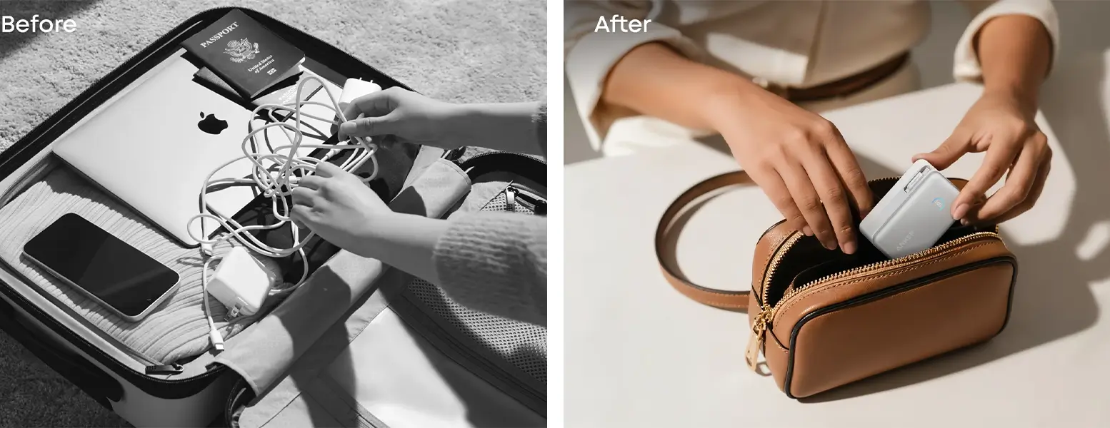 یکی از برجستهترین ویژگیهای پاور بانک انکر ۱۰۰۰۰، طراحی فوقالعاده هوشمندانه آن است. مدل A1638 با ۱۶ درصد کوچکتر بودن نسبت به مدلهای استاندارد، به راحتی در جیب یا کیف شما جا میشود و حتی برای پروازها نیز تأییدیه رسمی دارد.